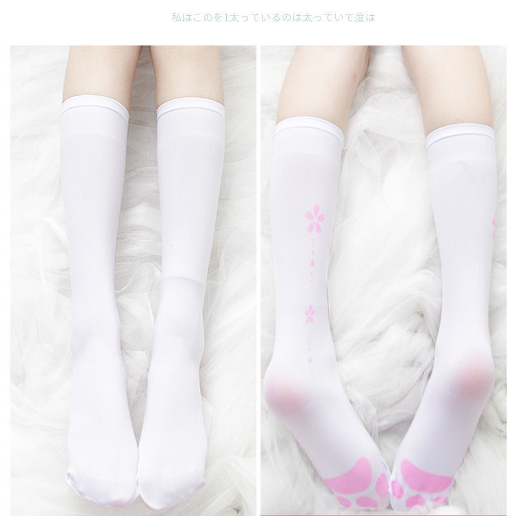 The Cat Paw Print Calf Stockings come in a classic white color, making them versatile enough to pair with any outfit. With their long tube design, they offer both warmth and style, making them an essential addition to your wardrobe.