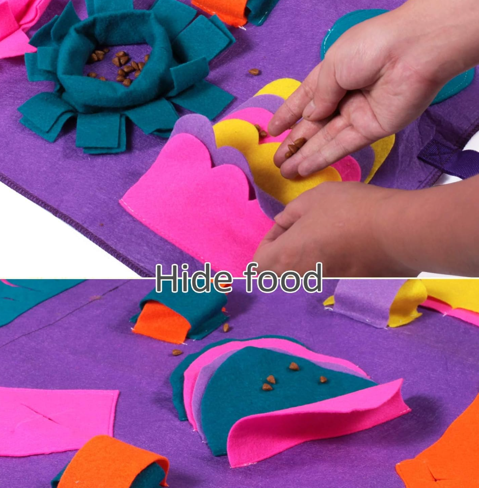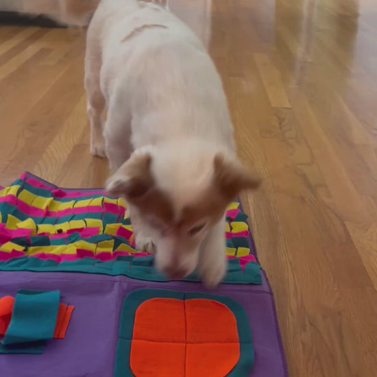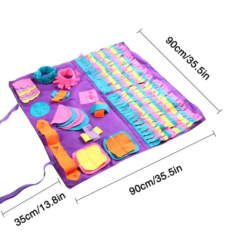 Unleash your dog's natural instincts with our vibrant and engaging extra large sniffing and foraging mat. Designed to stimulate your furry friend's mind, this snuffle mat is perfect for dogs of all sizes. Its colorful cloth material not only attracts attention but also encourages your pet to explore and forage, keeping them entertained for longer than traditional snuffle mats!